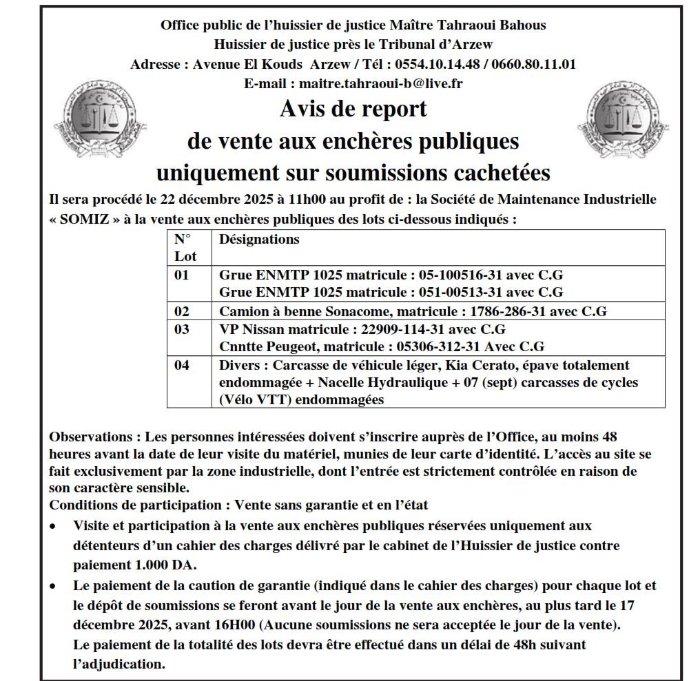 Il sera procédé à la vente au plus offrant et dernier enchérisseur le :