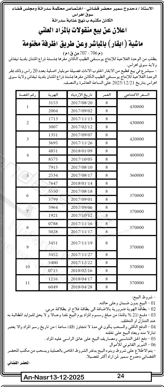 | Objet: Vente d’un troupeau de 20 vaches laitières femelles de race Montbéliarde. | |