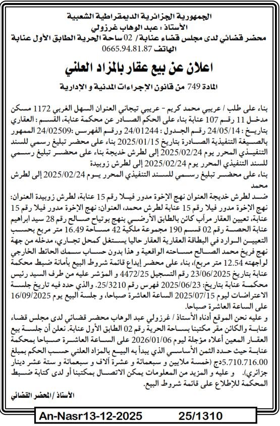 Il sera procédé à la vente au plus offrant et dernier enchérisseur le :