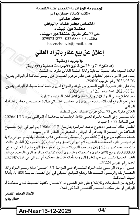 | Date Publication : 13/12/2025 | |