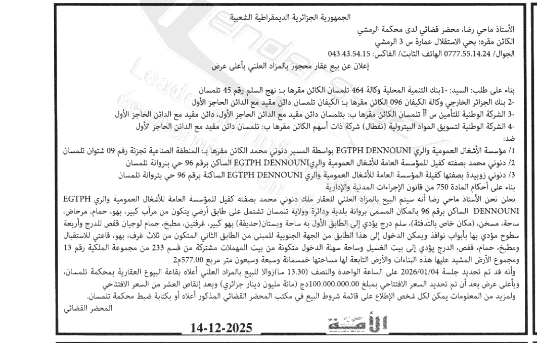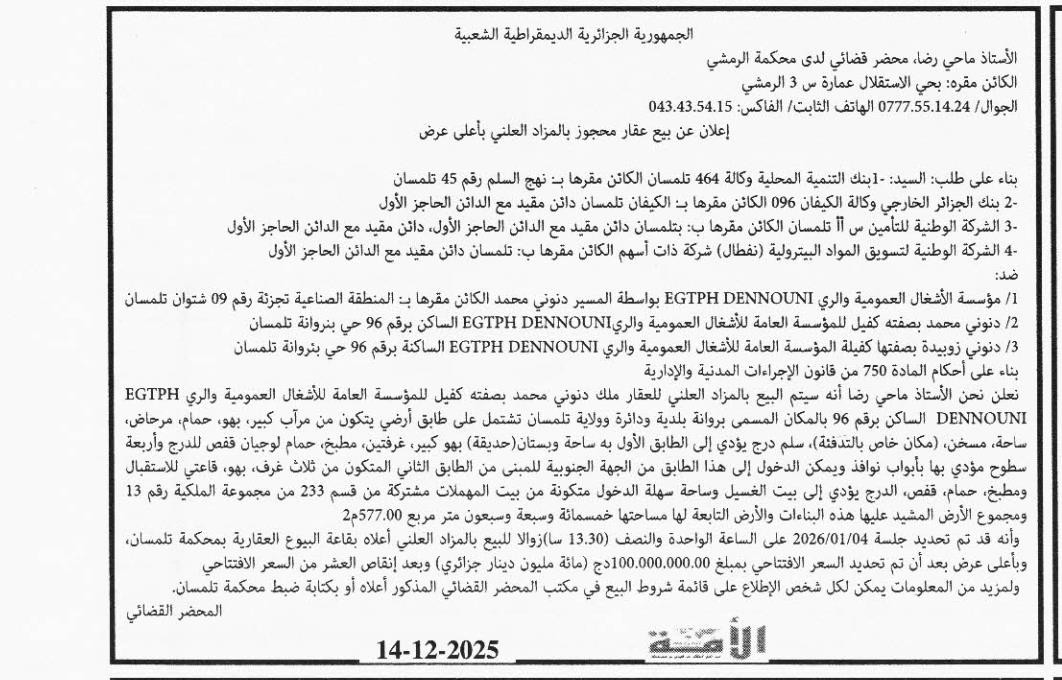 Il sera procédé à la vente au plus offrant et dernier enchérisseur le :
