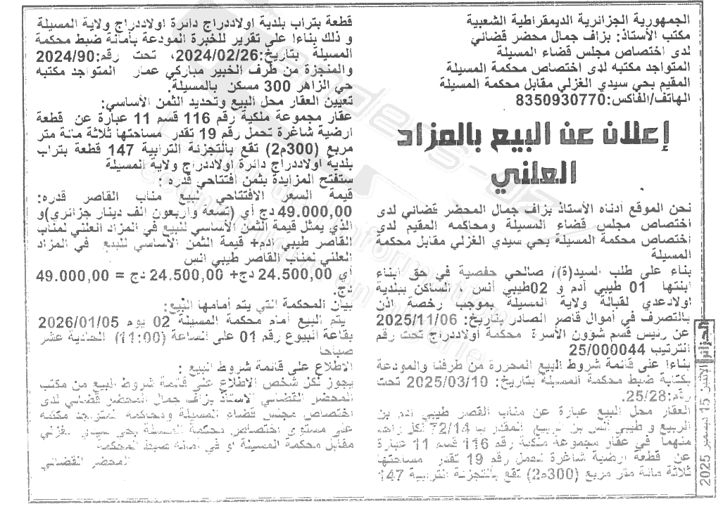 | Wilaya : MSila | |