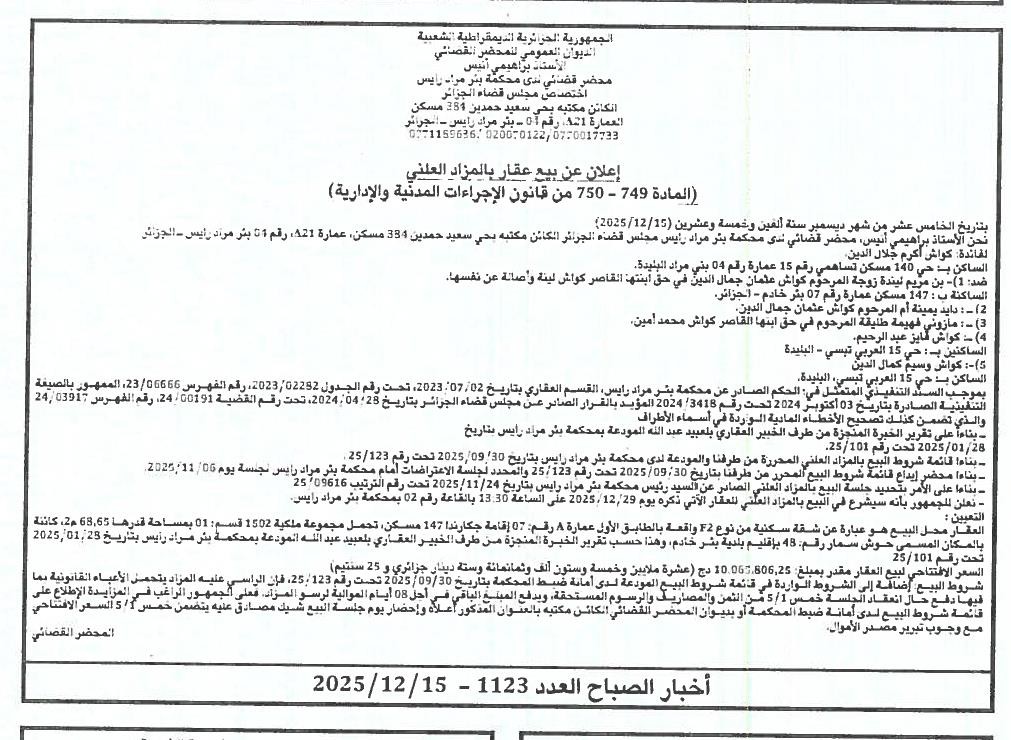 Il sera procédé à la vente au plus offrant et dernier enchérisseur le :
