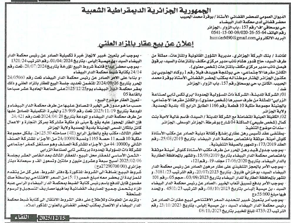 Il sera procédé à la vente au plus offrant et dernier enchérisseur le :