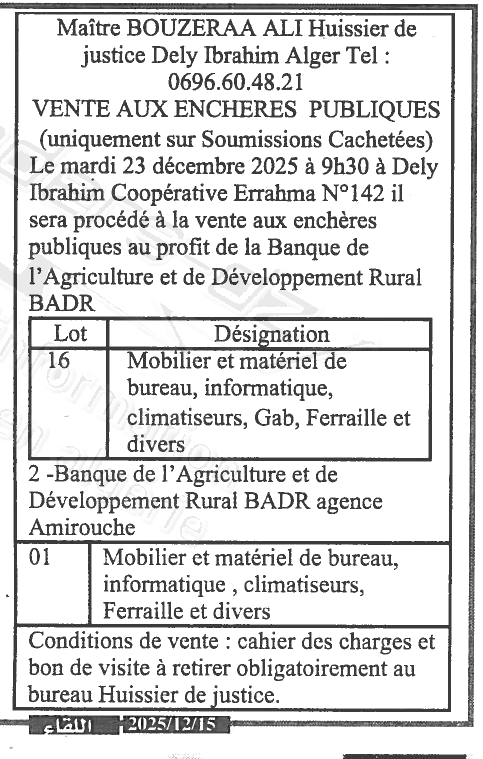 Il sera procédé à la vente au plus offrant et dernier enchérisseur le :