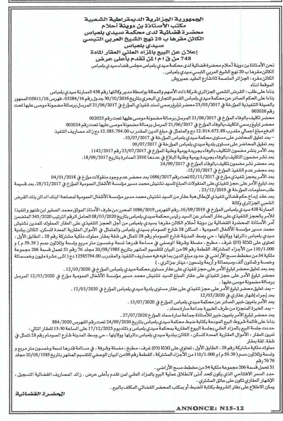 Il sera procédé à la vente au plus offrant et dernier enchérisseur le :