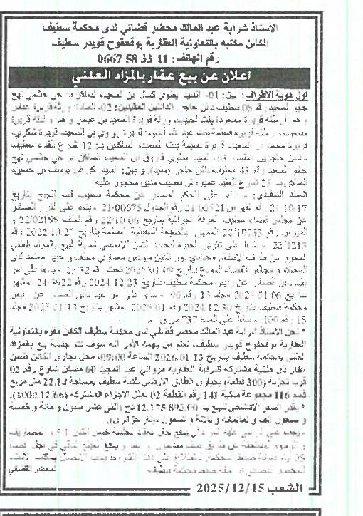 Il sera procédé à la vente au plus offrant et dernier enchérisseur le : 13/01/2026';