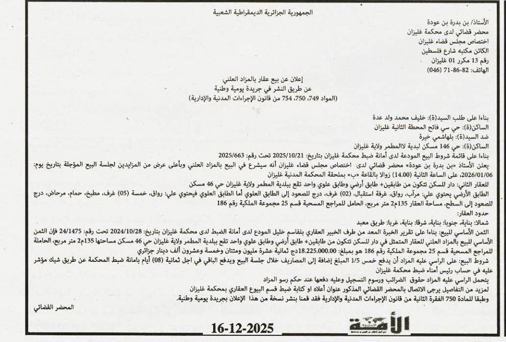 Il sera procédé à la vente au plus offrant et dernier enchérisseur le :