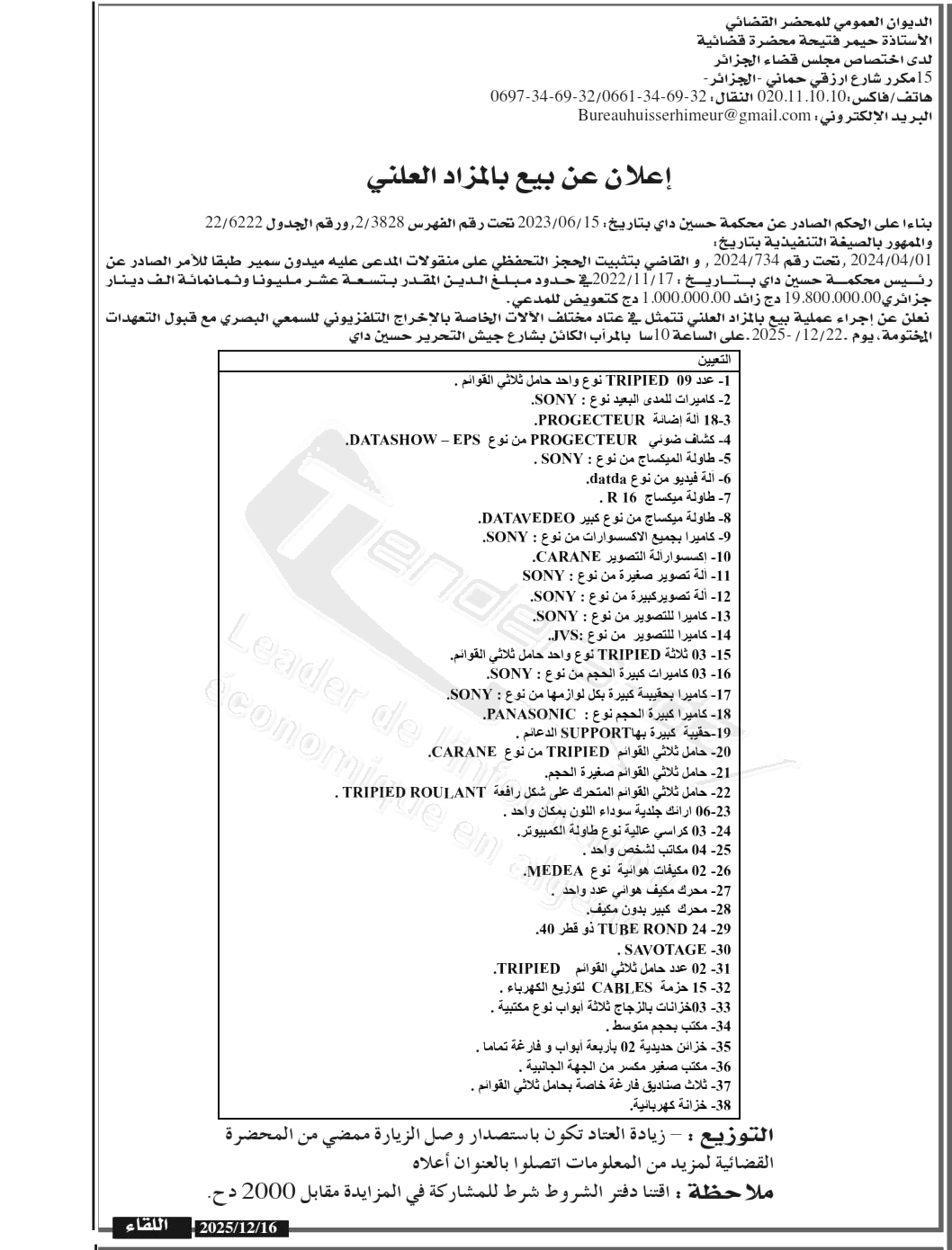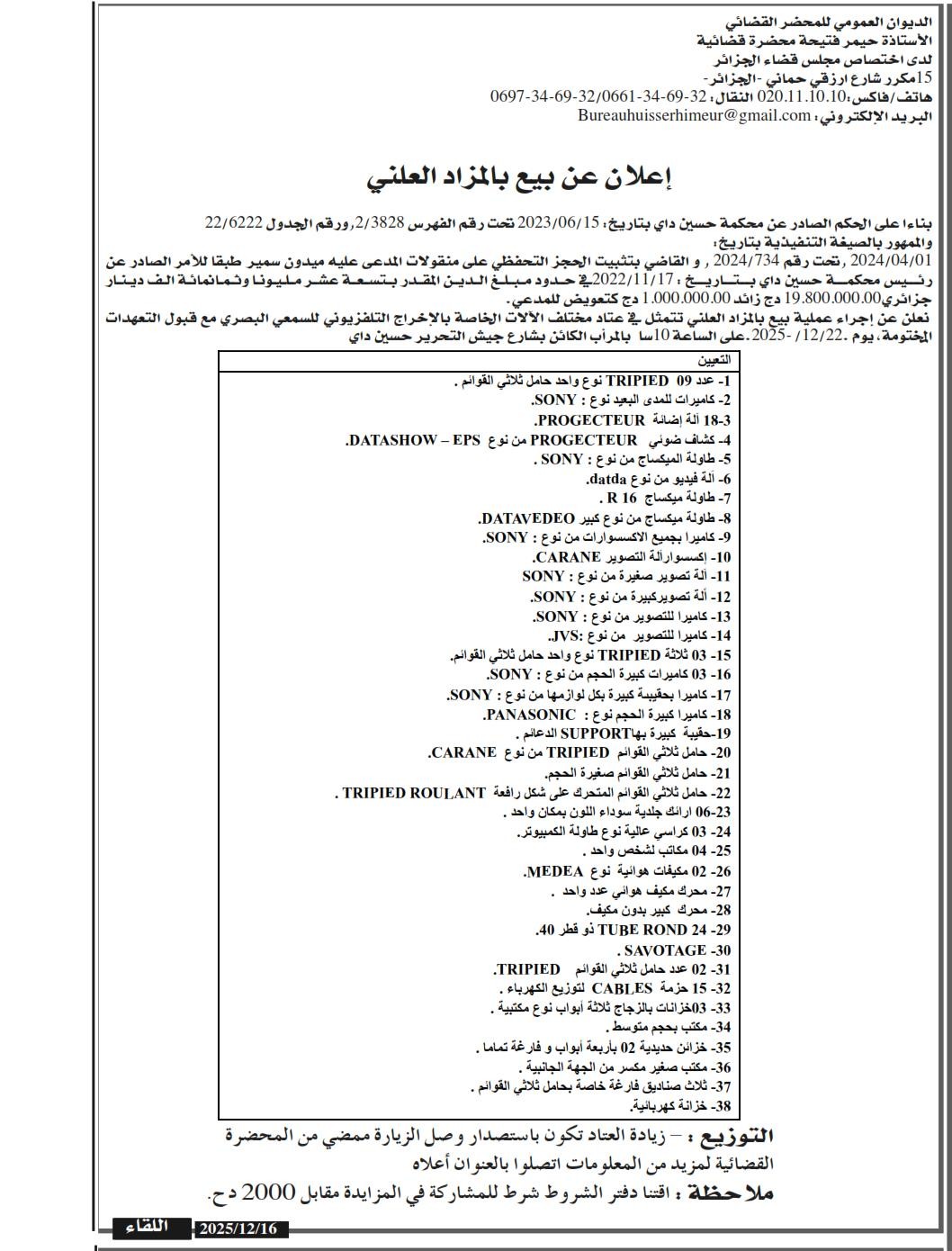 Il sera procédé à la vente au plus offrant et dernier enchérisseur le :