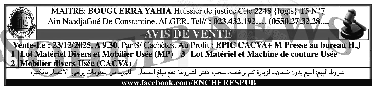 Il sera procédé à la vente au plus offrant et dernier enchérisseur le :