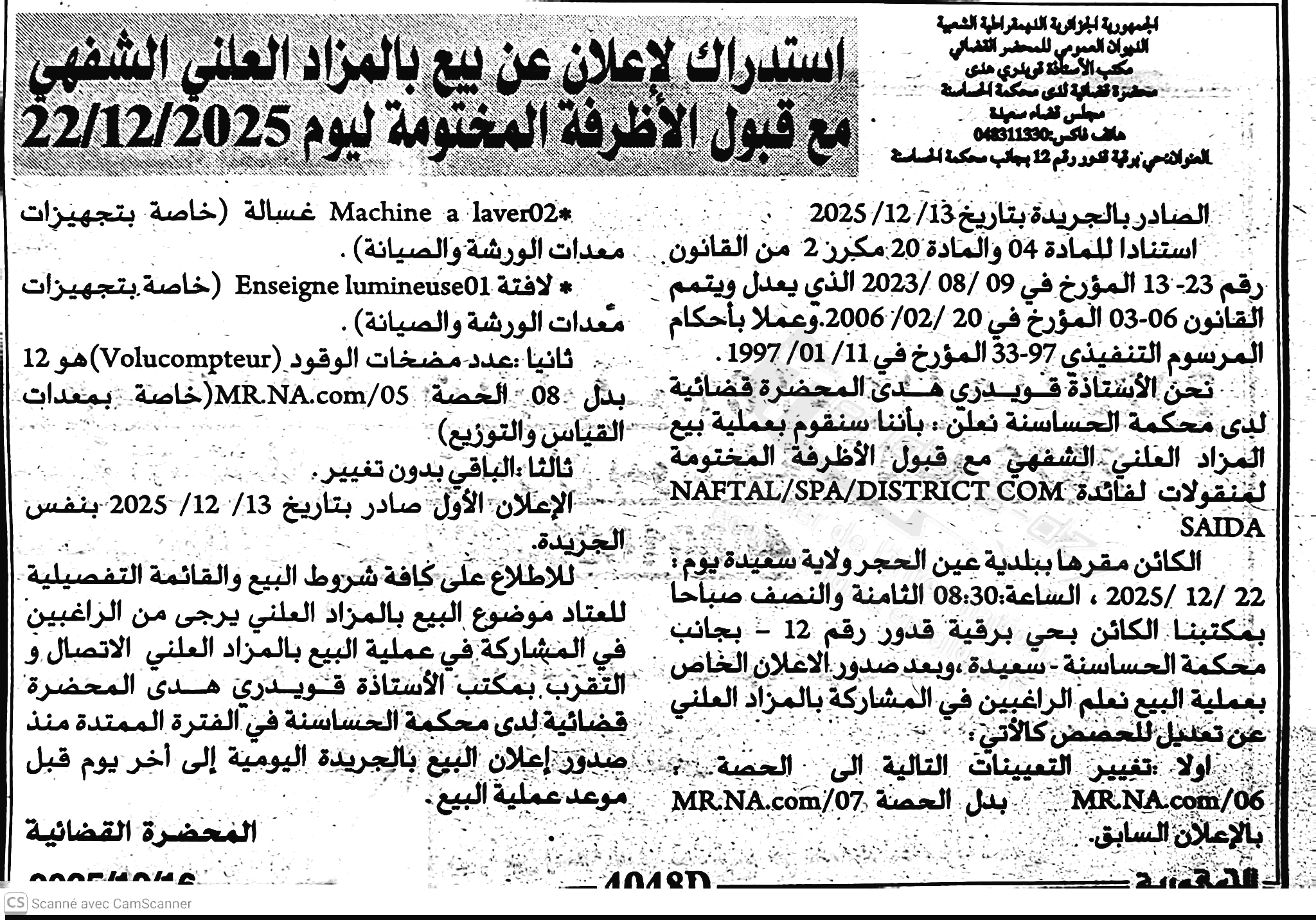 Il sera procédé à la vente au plus offrant et dernier enchérisseur le :