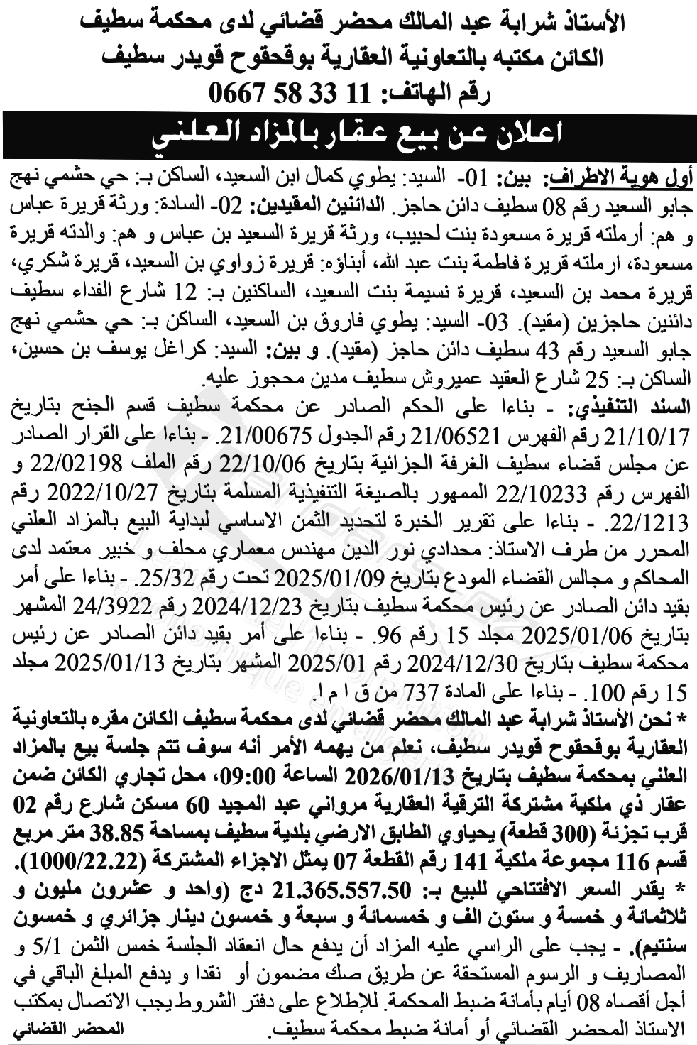Il sera procédé à la vente au plus offrant et dernier enchérisseur le :