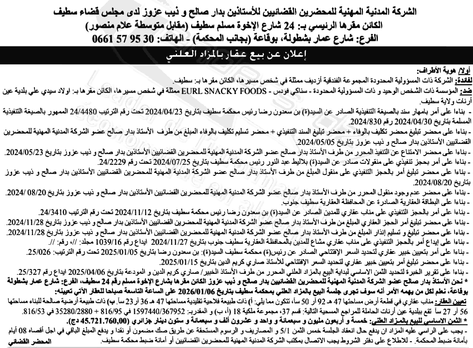 Il sera procédé à la vente au plus offrant et dernier enchérisseur le :