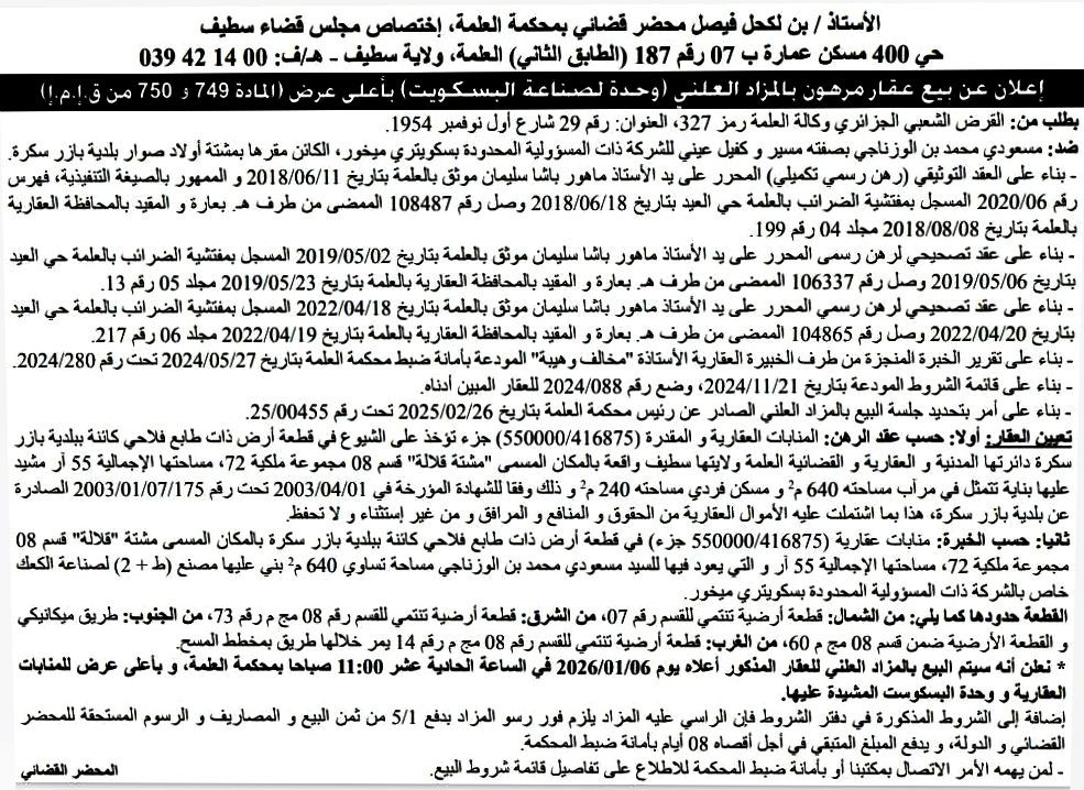 Il sera procédé à la vente au plus offrant et dernier enchérisseur le :