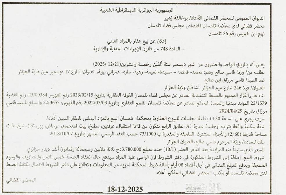 Il sera procédé à la vente au plus offrant et dernier enchérisseur le :