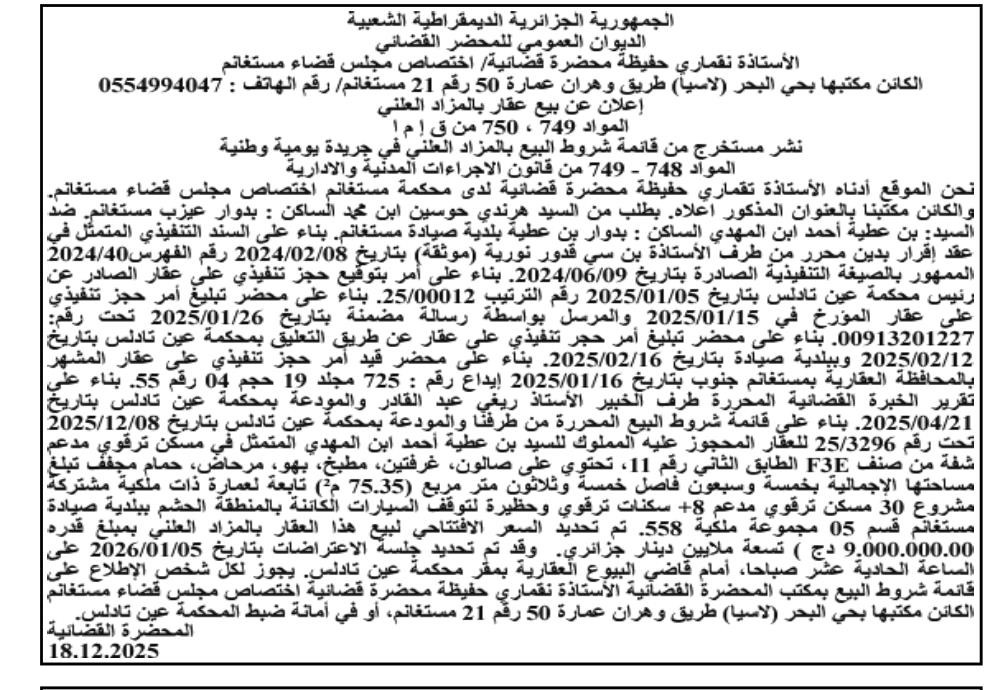 Il sera procédé à la vente au plus offrant et dernier enchérisseur le :