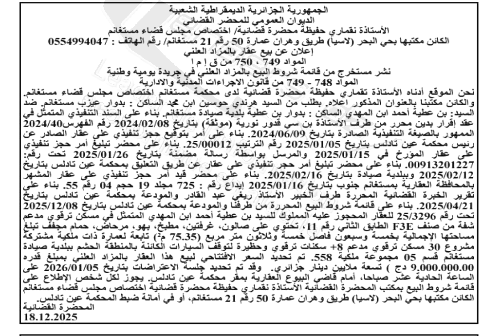 | Wilaya : Mostaganem | |