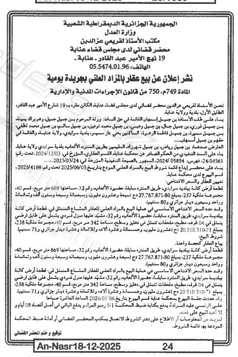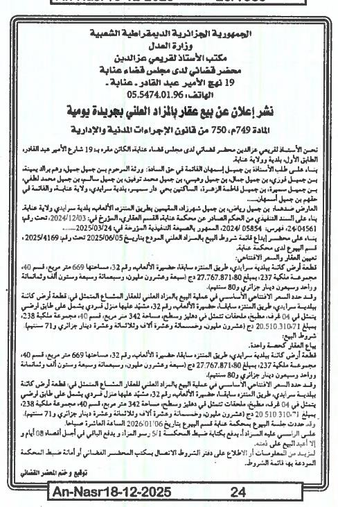 Il sera procédé à la vente au plus offrant et dernier enchérisseur le :