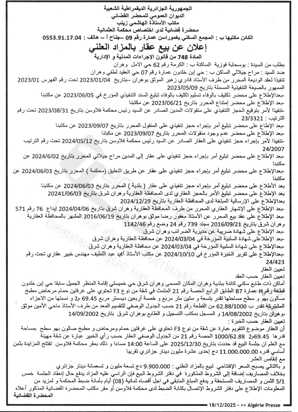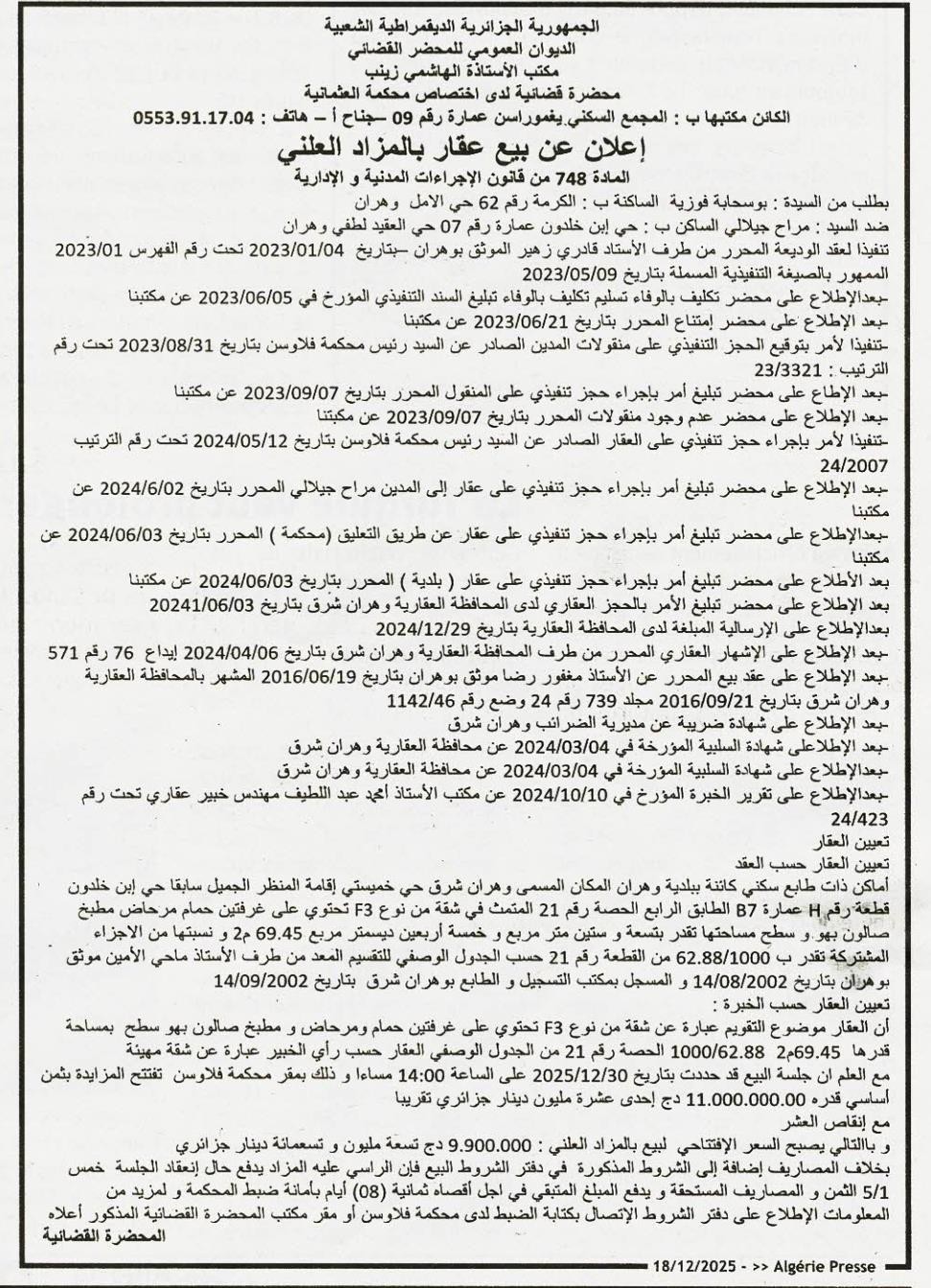 Il sera procédé à la vente au plus offrant et dernier enchérisseur le :