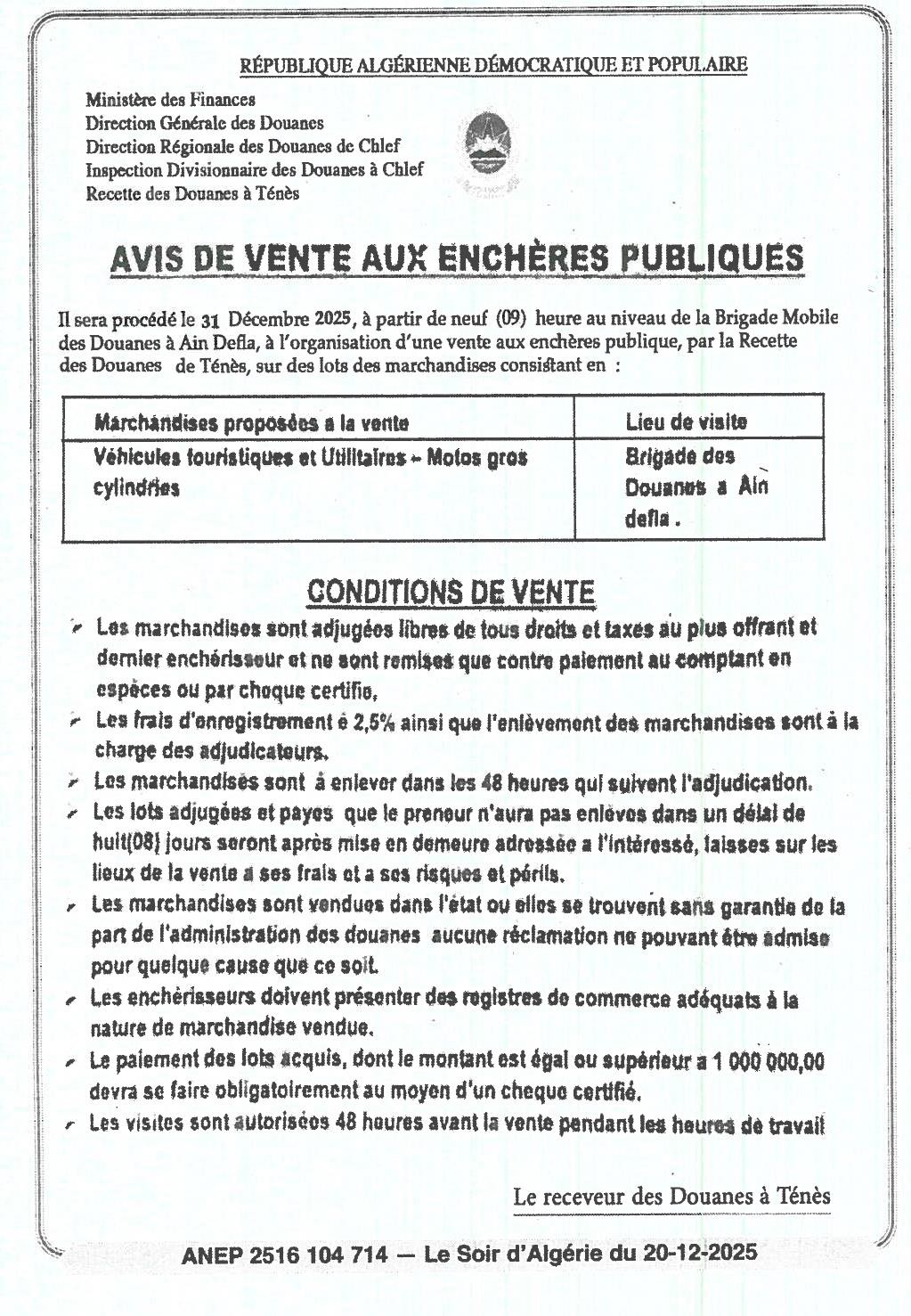 Il sera procédé à la vente au plus offrant et dernier enchérisseur le :