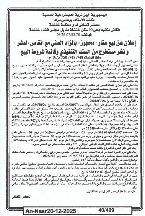 Il sera procédé à la vente au plus offrant et dernier enchérisseur le :