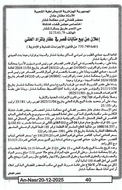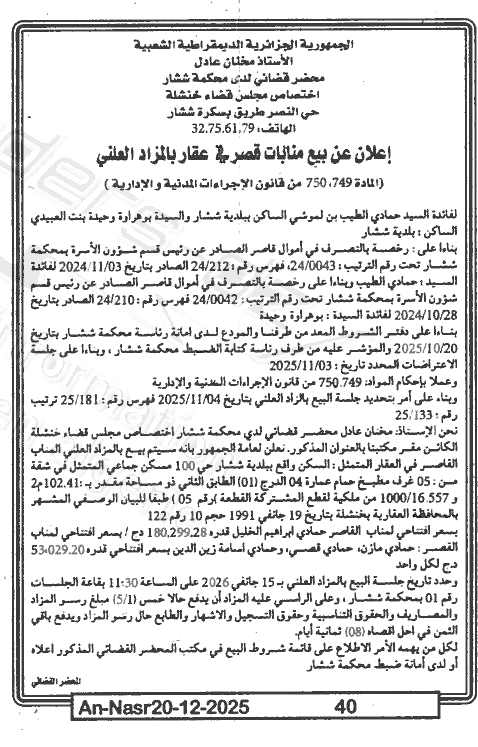 Il sera procédé à la vente au plus offrant et dernier enchérisseur le :
