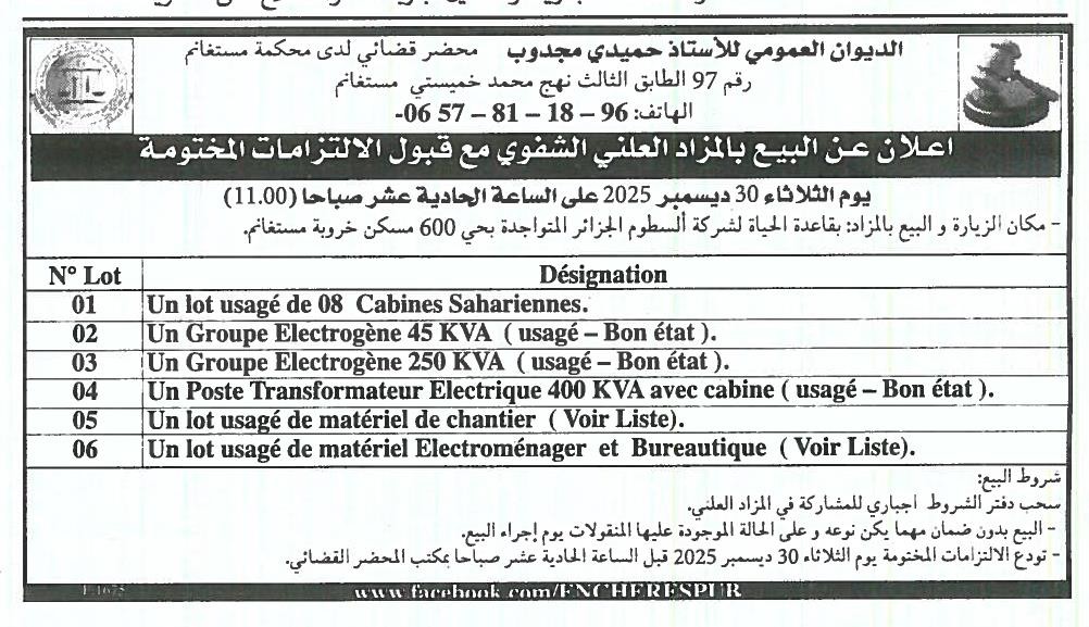 Il sera procédé à la vente au plus offrant et dernier enchérisseur le :