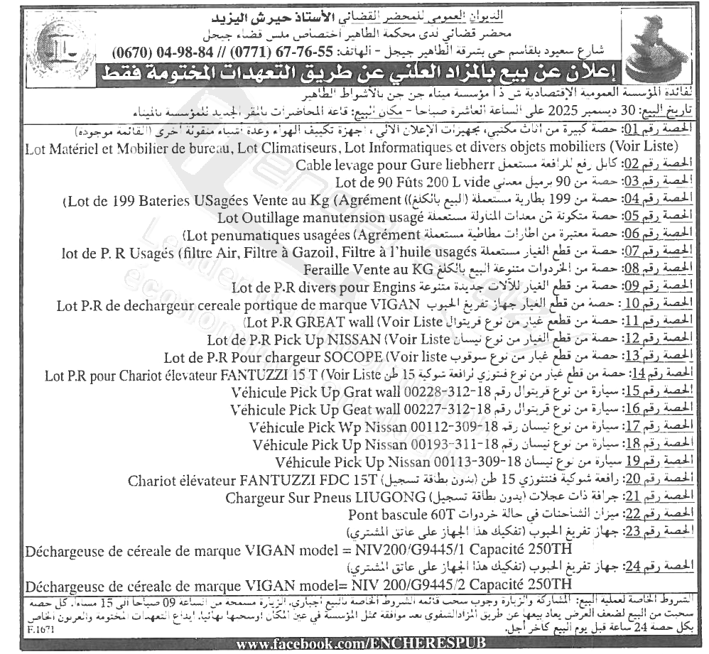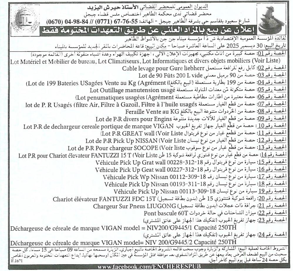 Il sera procédé à la vente au plus offrant et dernier enchérisseur le :