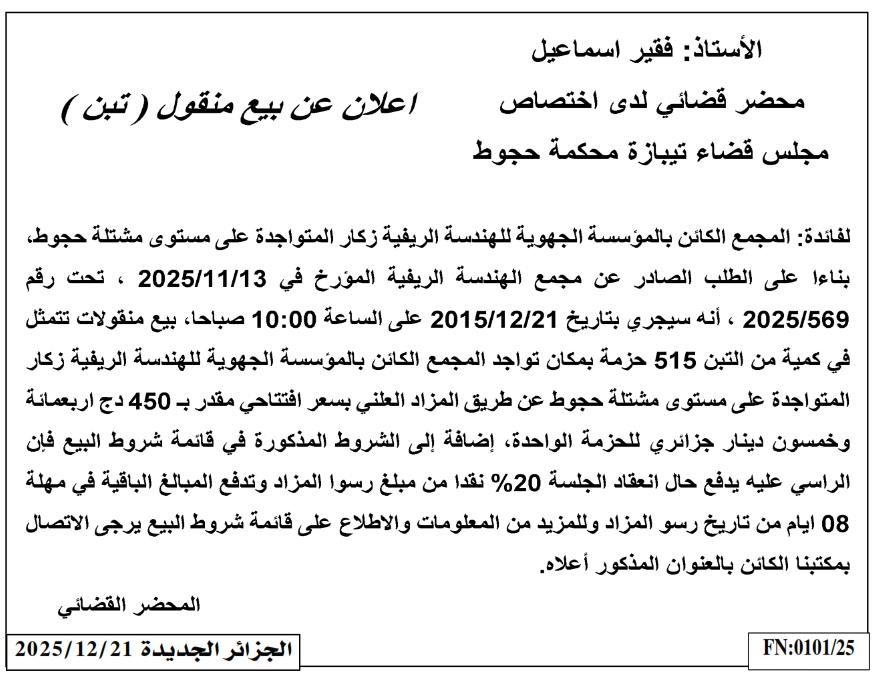 | Paru dans le journal : الجزائر الجديدة | |