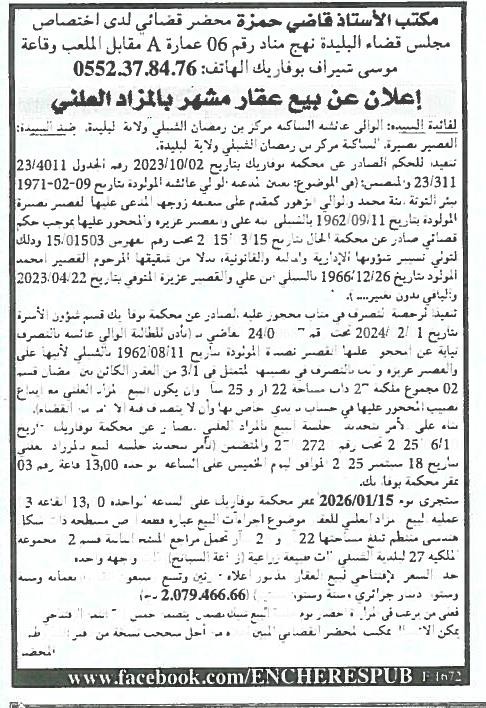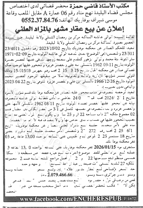 Il sera procédé à la vente au plus offrant et dernier enchérisseur le :