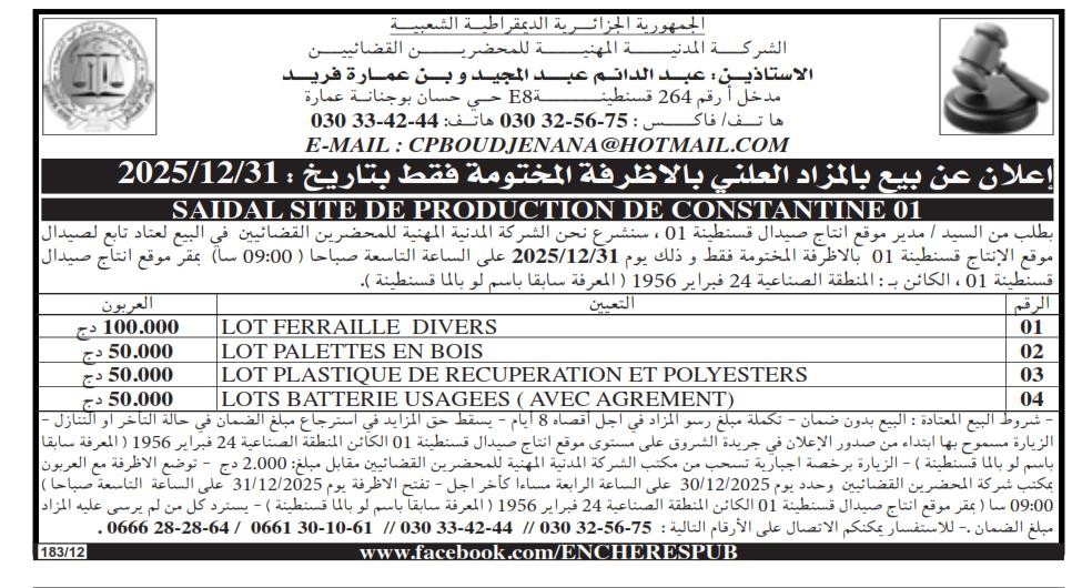 Il sera procédé à la vente au plus offrant et dernier enchérisseur le :