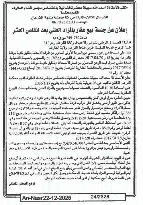 Il sera procédé à la vente au plus offrant et dernier enchérisseur le :
