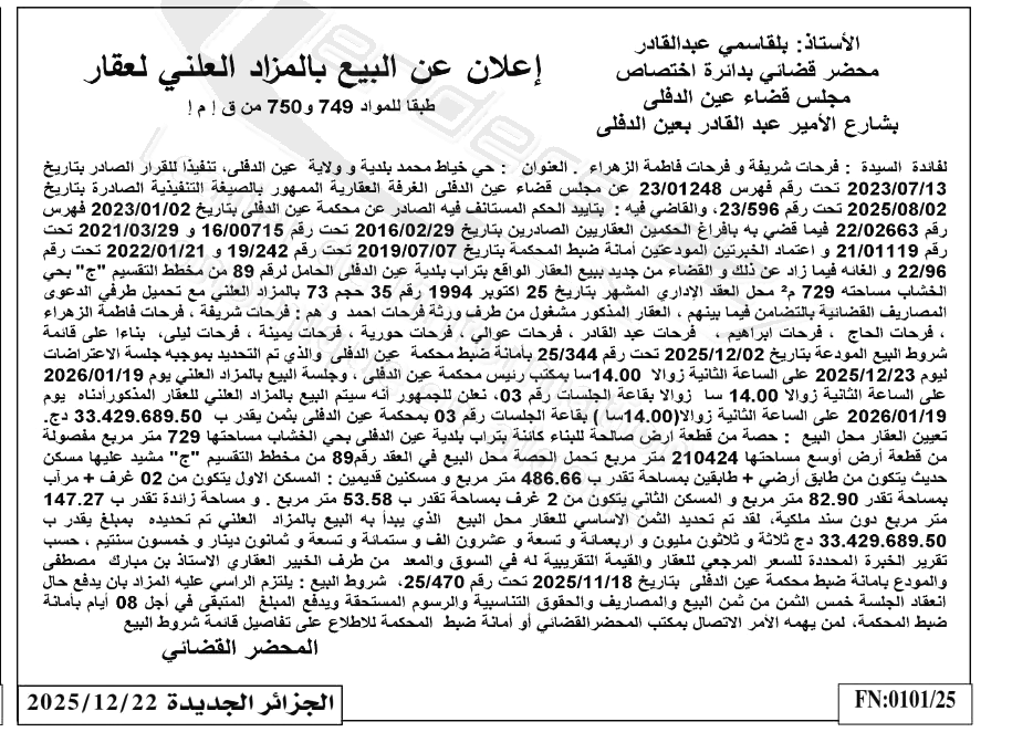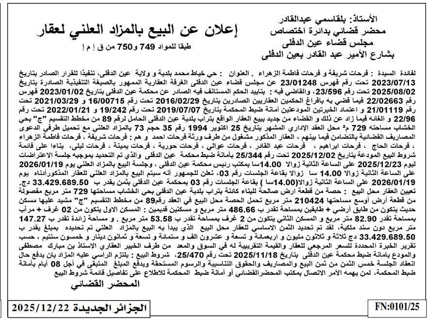 | Paru dans le journal : الجزائر الجديدة | |