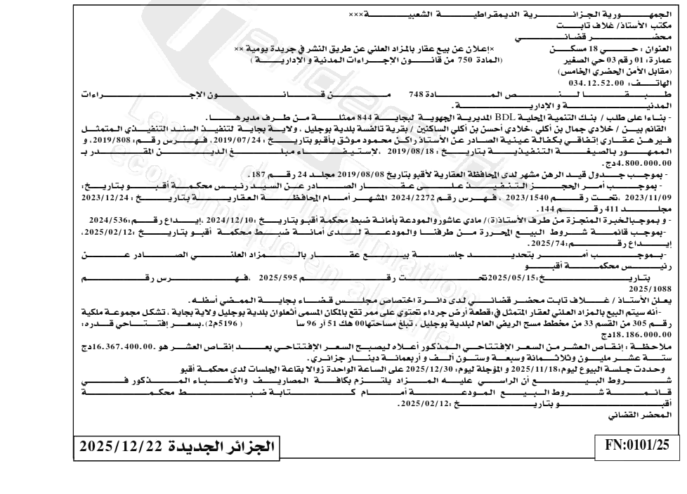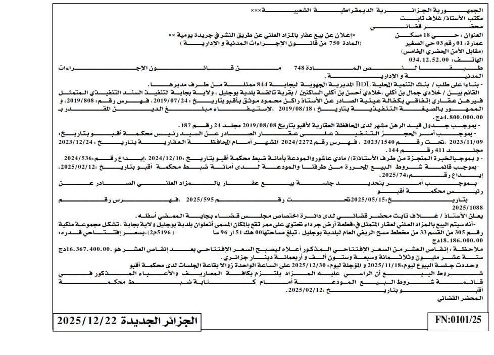 Il sera procédé à la vente au plus offrant et dernier enchérisseur le :