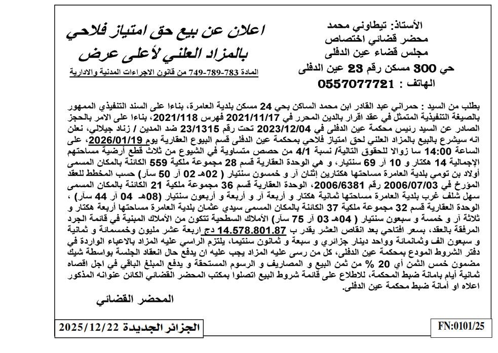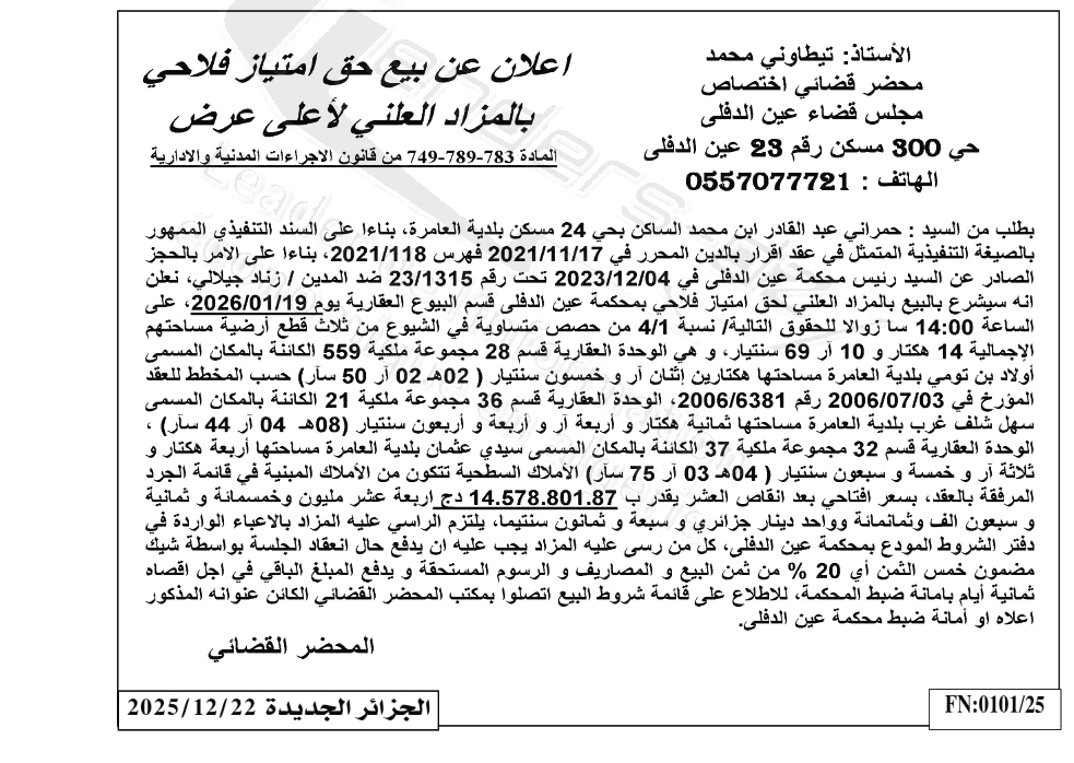 Il sera procédé à la vente au plus offrant et dernier enchérisseur le :