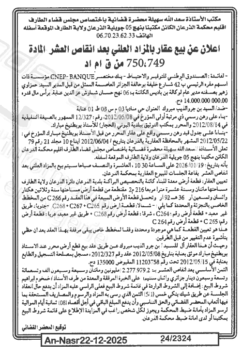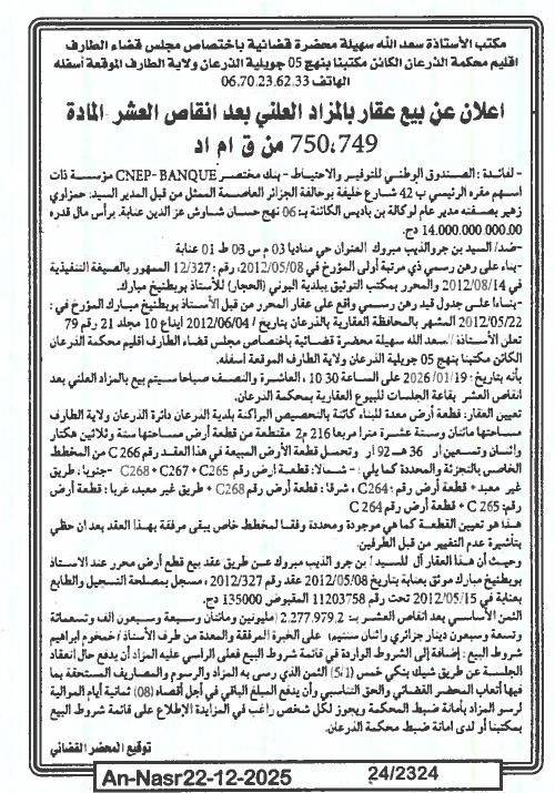 Il sera procédé à la vente au plus offrant et dernier enchérisseur le :