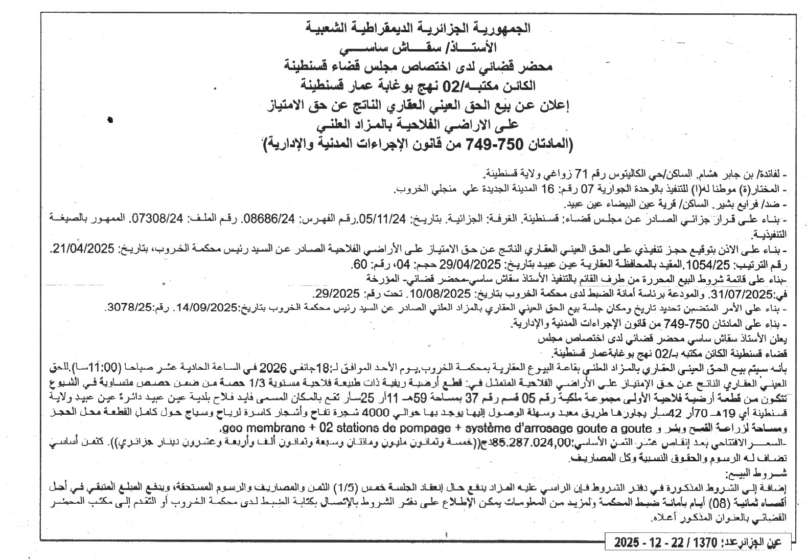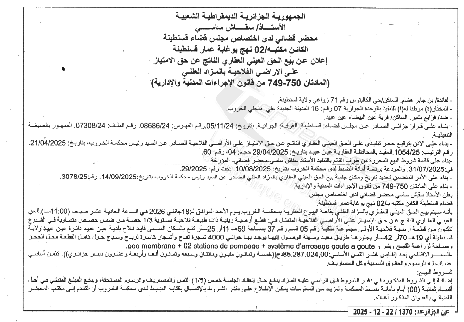 Il sera procédé à la vente au plus offrant et dernier enchérisseur le :