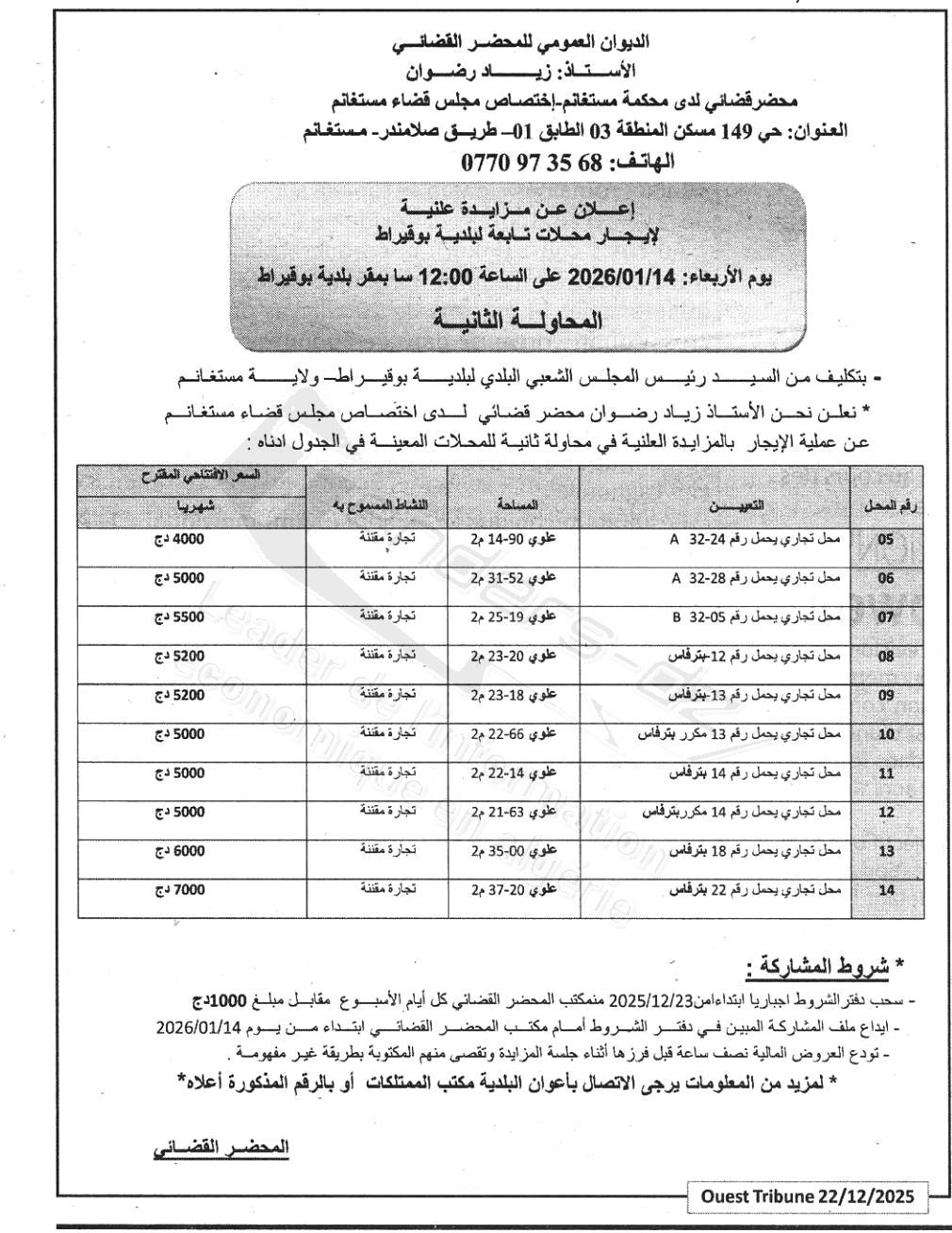 | (*) LA DATE EST DONNÉE À TITRE INDICATIF, VEUILLEZ LA VÉRIFIER LORS DU RETRAIT DU CAHIER DES CHARGES OU AUPRÈS DE L\'ÉMETTEUR | |