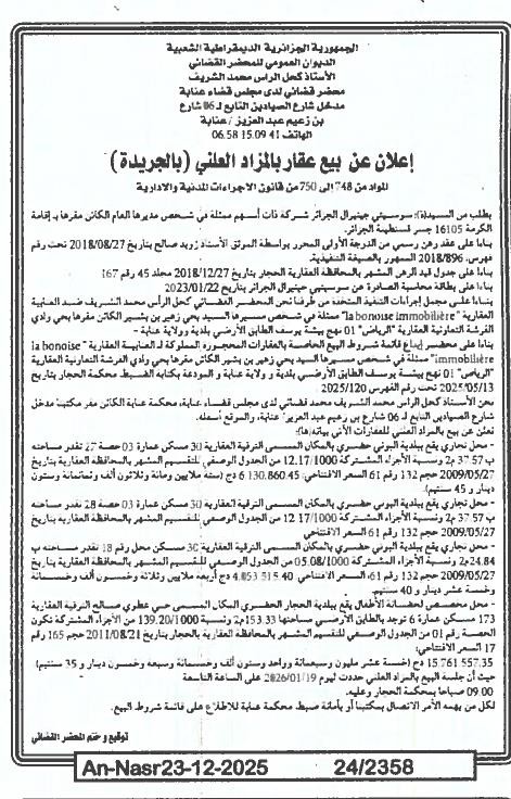 | Paru dans le journal : النصر | |