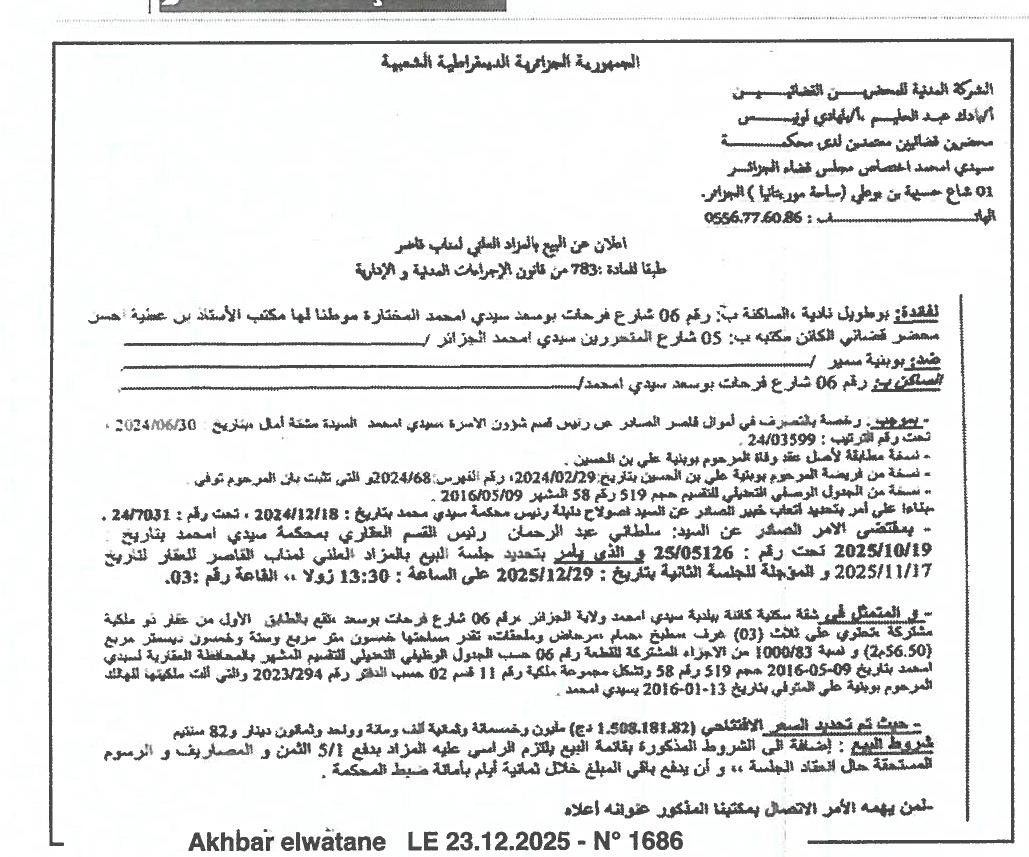 | Paru dans le journal : أخبار الوطن | |