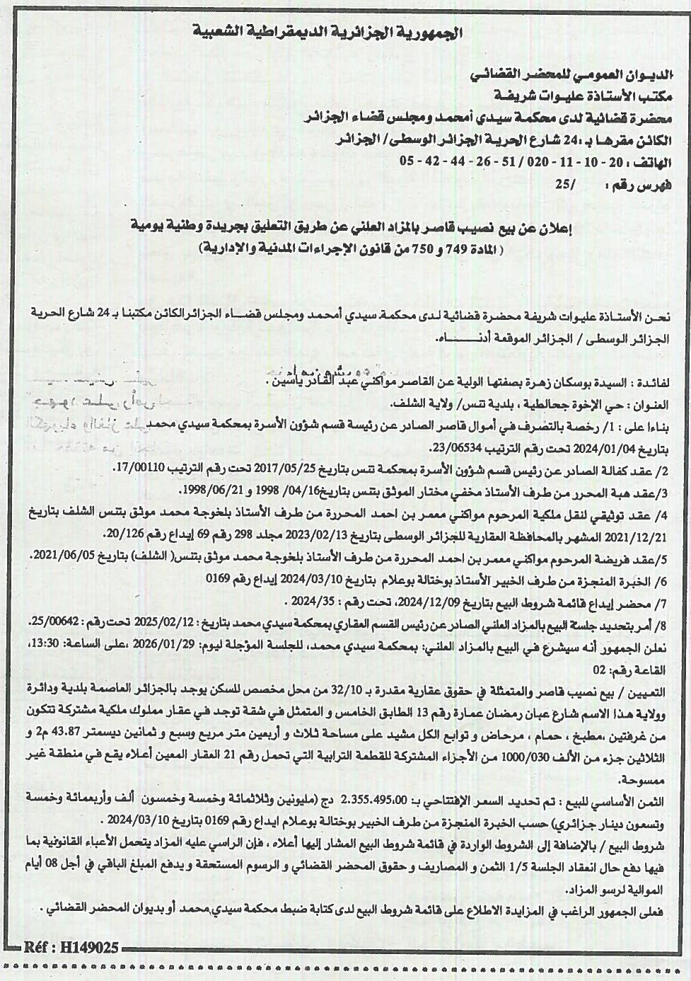 | Wilaya : Alger | |