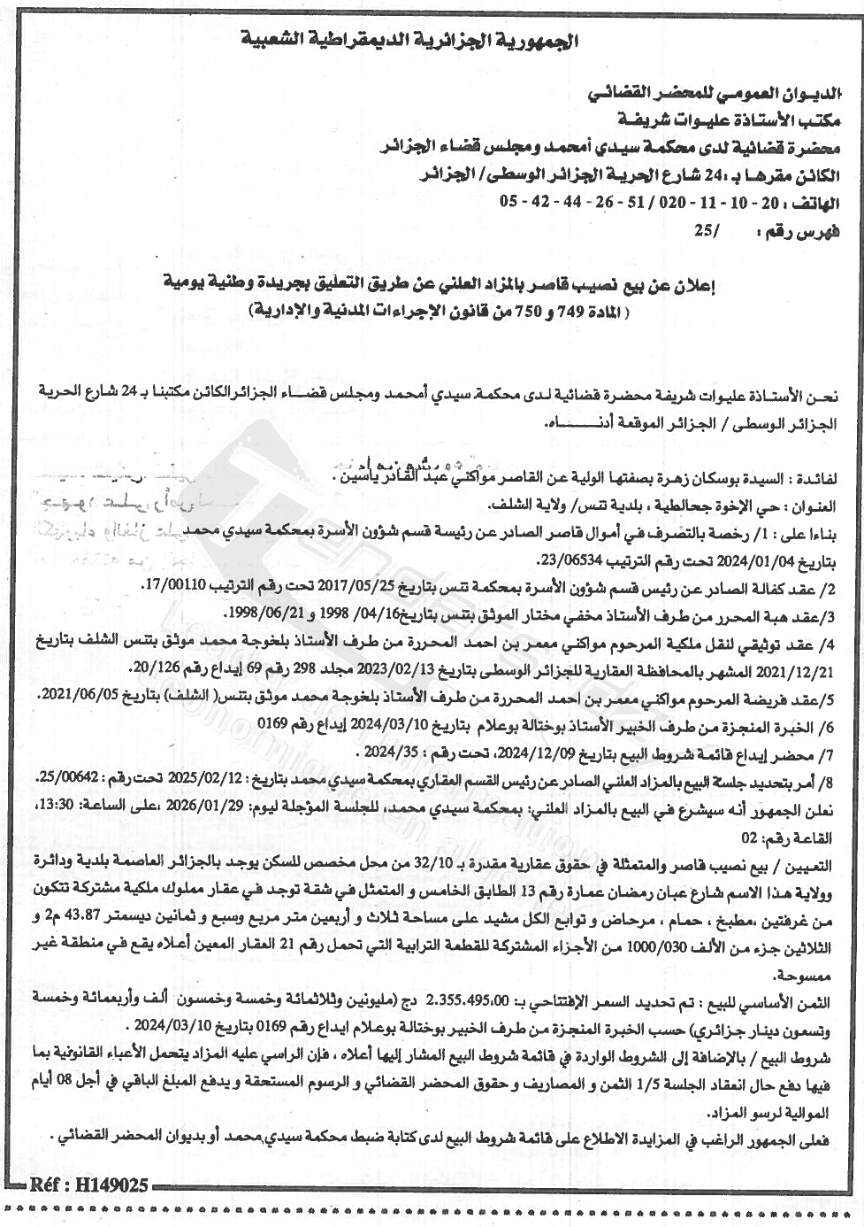 Il sera procédé à la vente au plus offrant et dernier enchérisseur le :