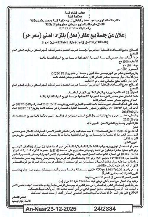 Il sera procédé à la vente au plus offrant et dernier enchérisseur le :