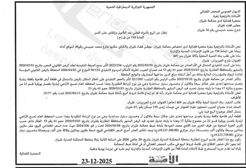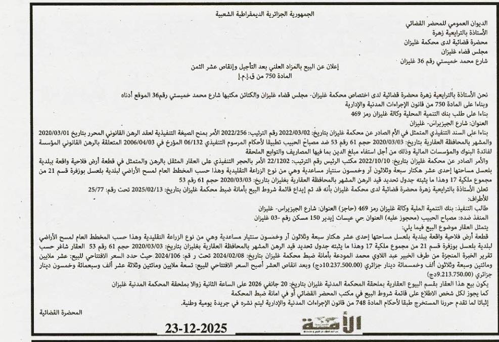 Il sera procédé à la vente au plus offrant et dernier enchérisseur le :