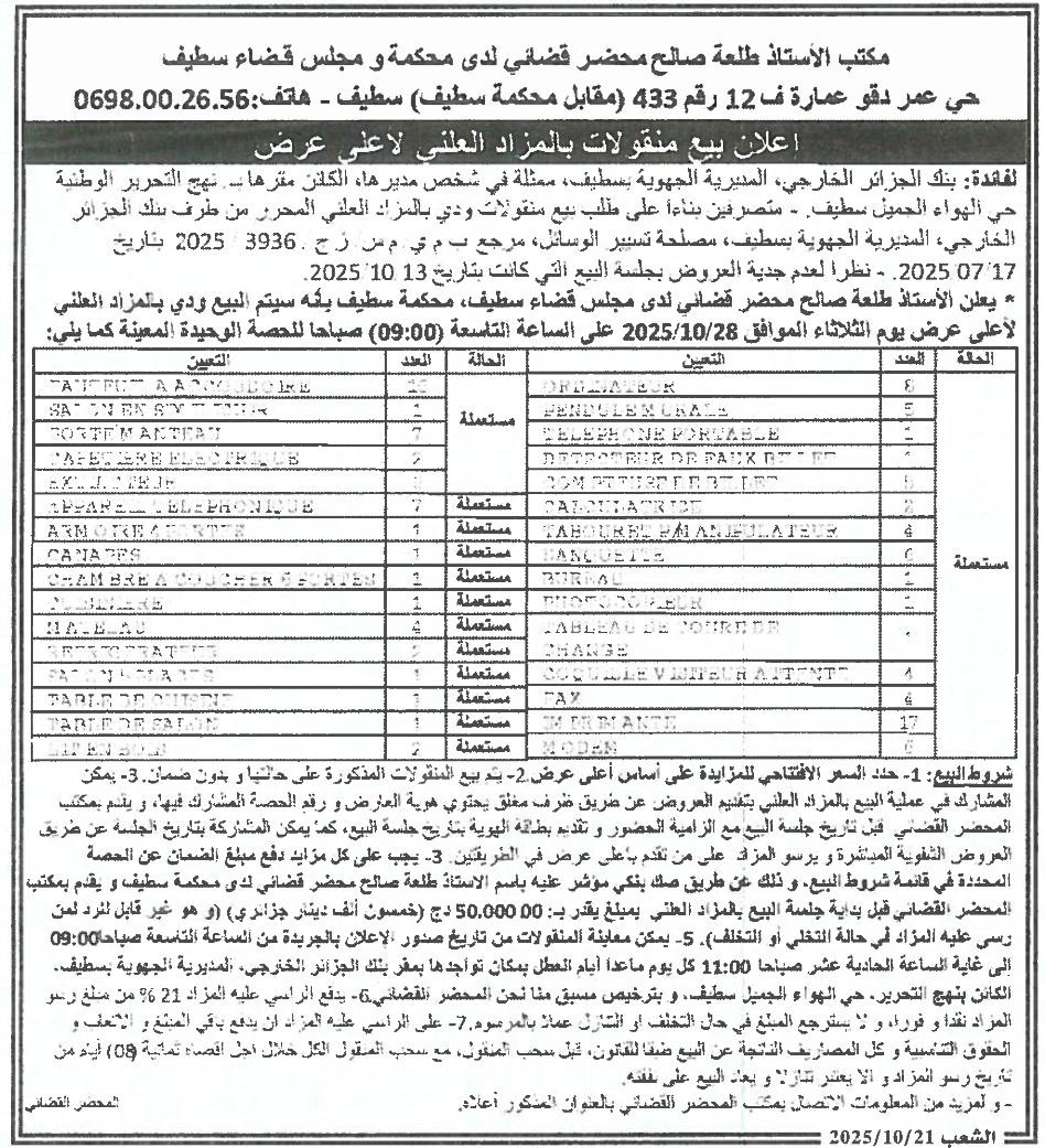 Il sera procédé à la vente au plus offrant et dernier enchérisseur le :