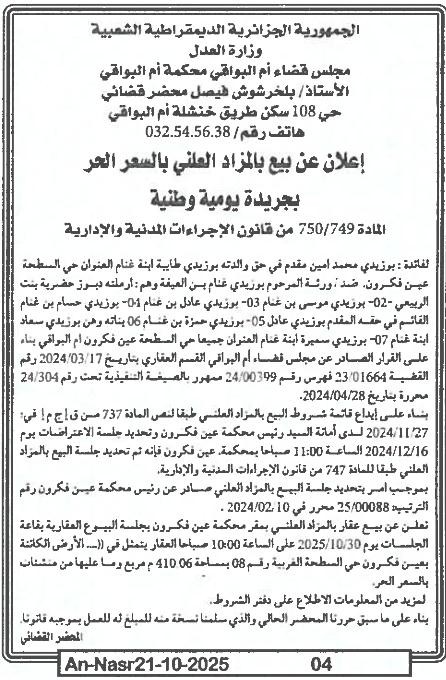 | Paru dans le journal : النصر | |