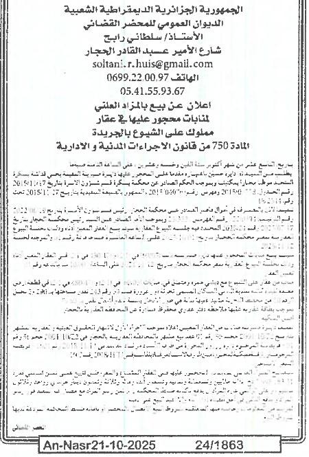 Il sera procédé à la vente au plus offrant et dernier enchérisseur le :