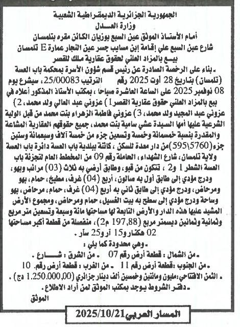 Il sera procédé à la vente au plus offrant et dernier enchérisseur le :