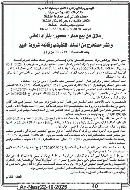 Il sera procédé à la vente au plus offrant et dernier enchérisseur le :