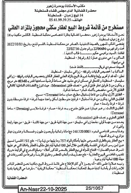 Il sera procédé à la vente au plus offrant et dernier enchérisseur le : 29/10/2025';